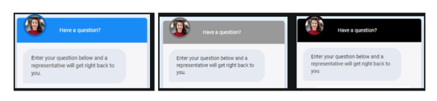 In the chat video, you have the option to customize the color scheme. Instead of blue, you can choose to change it to either black or a shade of gray. This allows you to align the color with your branding preferences, too. You can utilize the corresponding color code provided like (#000 for black, #999 for gray).