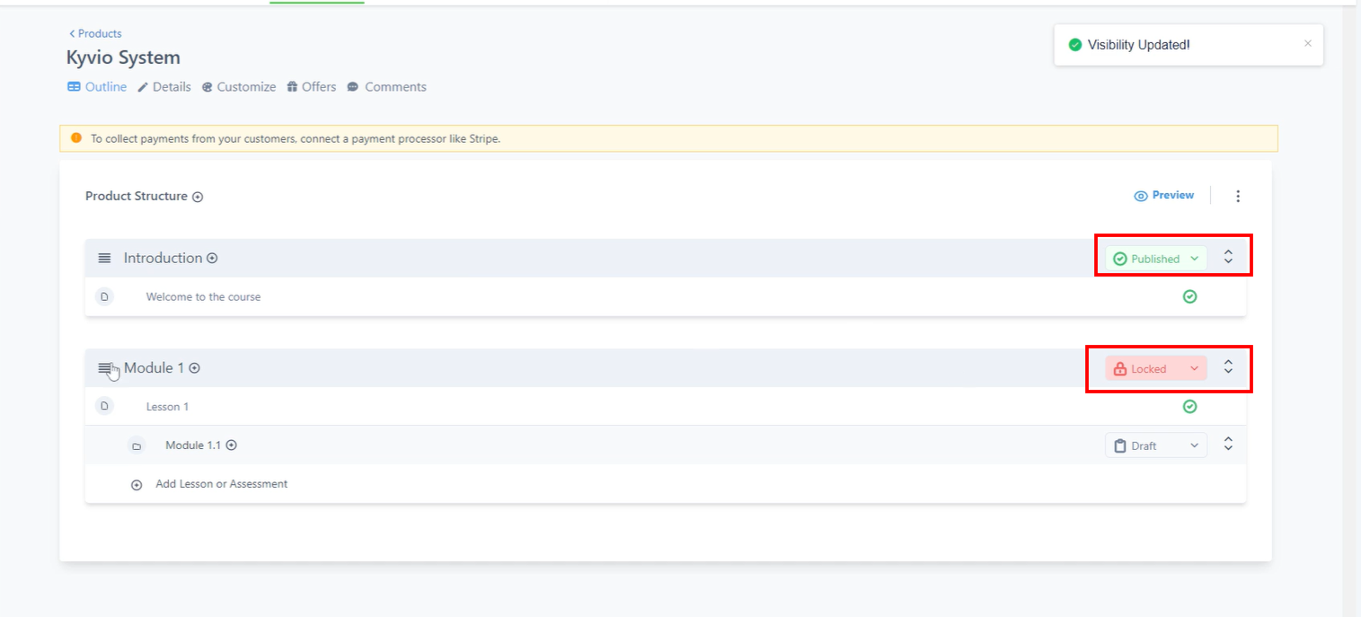 In the next category, which can be set as "locked." This means that the category remains inaccessible to users until they have completed the necessary steps, such as engaging in discussions or marking previous lessons as complete. Once the user meets the requirements, they gain access to the locked category and its associated lessons. It's important to note that for this membership product setup to work effectively, ensure that all your videos are published. By making them public, you guarantee that they are visible to the intended audience. This ensures a seamless user experience and allows your members to access the content they have subscribed to.