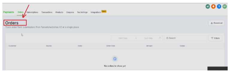 1. Within the "Orders" section, you will find a consolidated record of all submissions