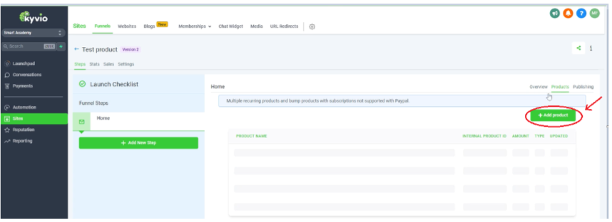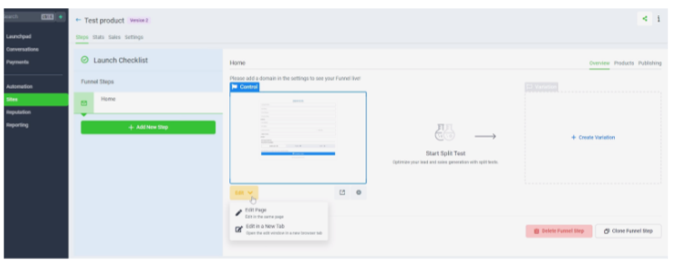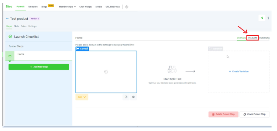 One-step order form Two-step order form And after that you have to connect it to your website, you just simply need to go inside “sites”. For example, you want to create a new funnel it's a test product let's add a step use the correct from blank option form let's get back and add the product inside.