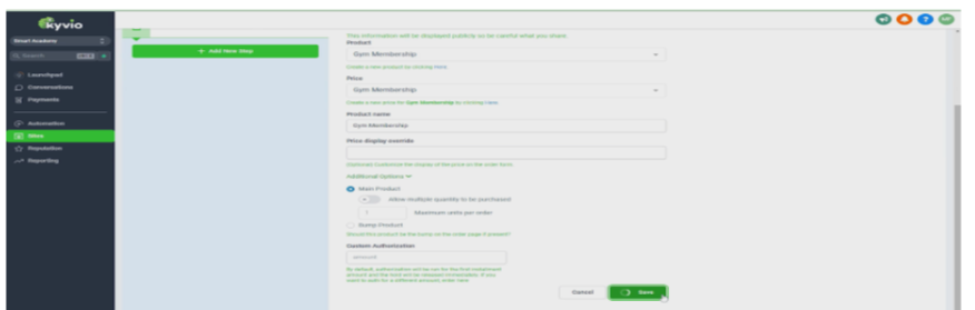 Once you have created the product, you will need to connect it to your website. To do this, you can navigate to the "Sites" section.