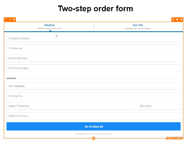Now you have the option to choose between a two-step order form and a one-step order form. The one-step order form is straightforward, as it allows the customer to provide all the necessary details in one place. On the other hand, the two-step form involves the customer filling out the first step, where they provide their personal information, and then in the second step, they provide their credit card details. This separation into two steps helps improve the overall security and convenience of the ordering process.