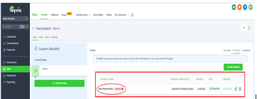 Currently, the product appears disabled since it's not connected to the Stripe payment gateway. Once you connect your payment gateway, the product will be displayed and accessible. By clicking the preview link, you'll be able to view the product. However, it currently lacks a payment method, which prevents viewing. Once you connect the payment gateway, the product will become active and no longer disabled. The absence of a connected payment gateway to the location is why the product is disabled. That's the process of creating products.