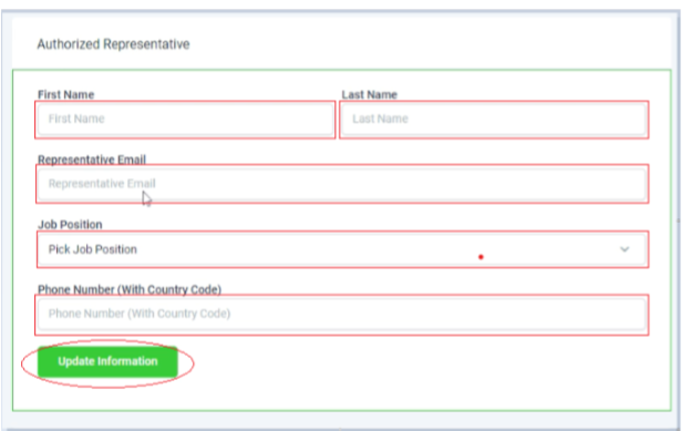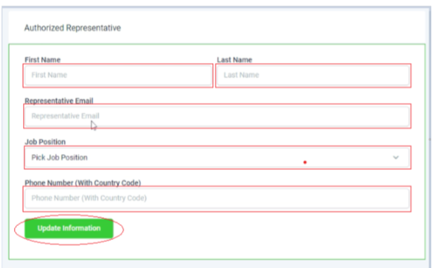 After completing the previous steps, scroll down to authorize a representative. Additionally, you can conveniently input your information and then click "Update"