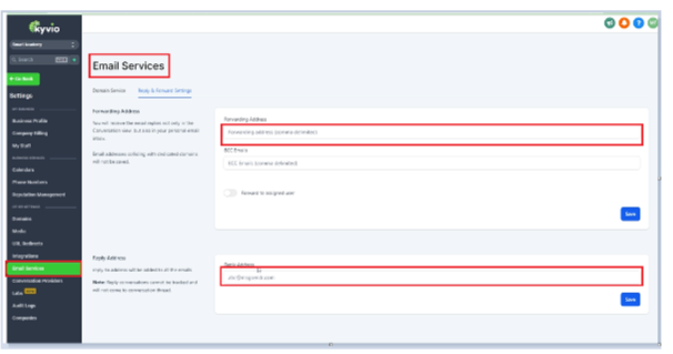 Access your email services easily when performing the task. Reply promptly to messages. When resetting or forwarding settings, choose your personal email address as the recipient for customer replies. This way, responses will be directed to both your personal email inbox and the conversation tab in Kyvio system. Make sure your business profile and provided email address for replies are consistent. By doing this, your specified email address will be displayed on the “sent emails”. Remember to save changes after updating this information. These steps are essential for effectively managing your Kyvio system.