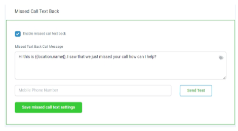 "Missed Call Text back" this feature can be enabled that allows you to do, When you receive an incoming call, and you're unable to answer you may have the option to automatically send a preset text message to the caller like "Hi this is {{location, name}} I saw that we just missed your call how can I help?" . The text message is then sent to the caller without you having to manually compose and send it.